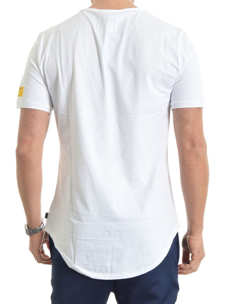 Vit t-shirt från Tigha. Från Tighas exklusiva och limiterade capsule collection "Acid". Atombombs varning och litet ärmtryck. Längre baktill än fram. Scoopad bak men rak fram.Normala storlekar. (På bild 187cm/85kg och strl L)