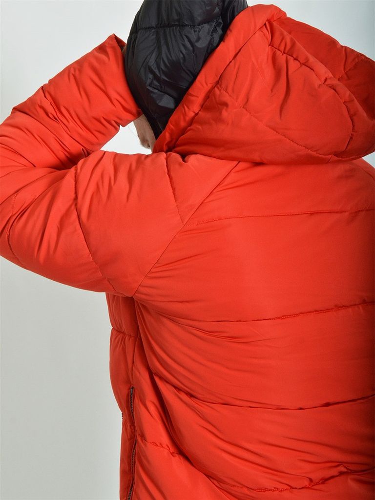 Röd jacka från franska Sixth June. Ficka på magen med tätad zipperstängning. Två fickor för händerna med zippers. Öppningsbara zippers vid sidorna. Zipperöppning i halsen som är dold med stor, ton-i-ton logo. Dragsko i luvan. Normala storlekar. (187cm/87kg,strl L)